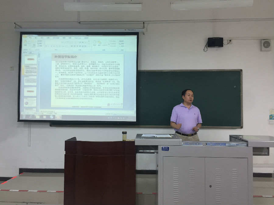 学院教授委员会主任袁森教授从师资队伍、学科建设、专业建设、专业就业前景、办学条件等方面的具体向大家介绍了我院翻译硕士授权点的情况,为他们更好地融入研究生学习生活奠定了基础。