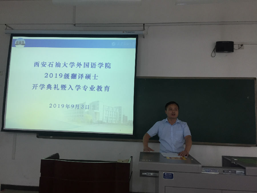 9月13日下午,我院2019级翻译硕士研究生开学典礼暨入学专业教育在鄠邑校区A201教室隆重举行。学院党政领导班子全体成员、翻译硕士研究生导师和2019级翻译硕士研究生参加开学典礼。