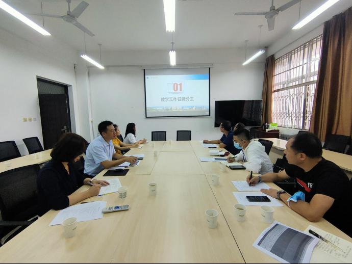 新学期教学工作会议在鄠邑校区人文经管楼314会议室召开。刘辉副院长、陈武副院长、各系部主任和教学办全体工作人员参加了会议。会议由陈武副院长主持。
