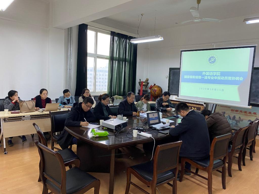 首先,陈武副院长介绍了此次一流专业申报的相关工作、学校要求及工作安排;其次,三级教授袁森对一流专业申报思路、申报书撰写进行指导,并对指标要求和申报要求进行解析,全方面对此次一流专业申报工作进行指导。接着英语专业负责人董梅副教授和俄语专业负责人孙婷副教授分别介绍了本专业申报工作安排。最后于艳英院长肯定了英语专业与俄语专业申报团队的付出,强调了一流专业申报的工作要求,并对此次申报工作进行整体部署。
