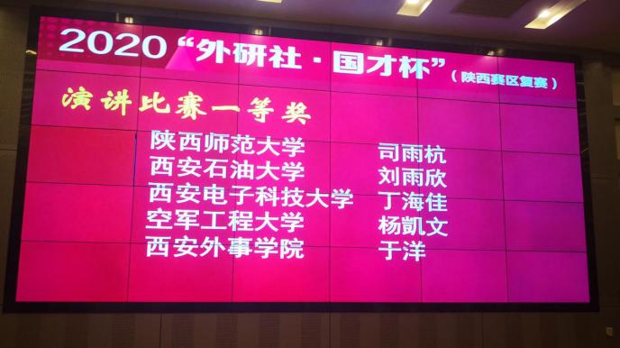 10月31日,2020年“外研社·国才杯”全国英语演讲、写作、阅读大赛陕西赛区总决赛在西安建筑科技大学雁塔校区举行。该赛事由外语教学与研究出版社、中国外语测评中心等主办,陕西省高等学校大学外语教学研究会协办,来自全省47所大学的300余名选手参加了决赛。