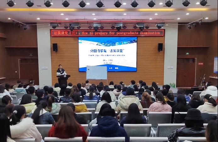 在鄠邑校区就业指导中心多功能厅举办“语翼课堂”考研辅导专题报告会。任春生副教授应邀担任主讲。院党委副书记王业青主持报告,2018级备考语言类研究生考试和有相关领域考研意向本科生聆听了报告。
