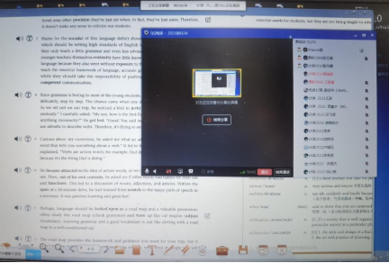 实践证明前期的准备和措施起到了积极的作用。在正式上课前我把路由器放到信号接收好的位置,学生说效果很好声音特别清晰也没有卡顿就像在他们耳边讲课的真实课堂中一样,互动也很积极,真是太好了,直播是种很好的尝试,悬着的心也放下了。
