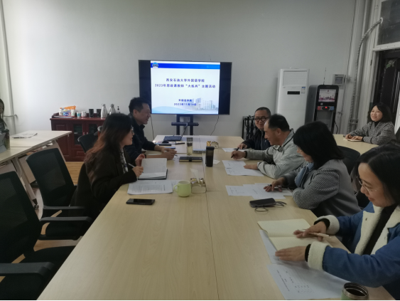 于11月14日下午在华油能源楼727举办了课程思政“大练兵”讲课比赛,学院党委书记田虹霞、副院长陈武、大学外语教学一部主任李雪梅、大学外语教学二部主任彭健、英语系主任钟泽波、翻译系副主任秦艳霞参加了本次主题活动。本次比赛由陈武副院长主持。