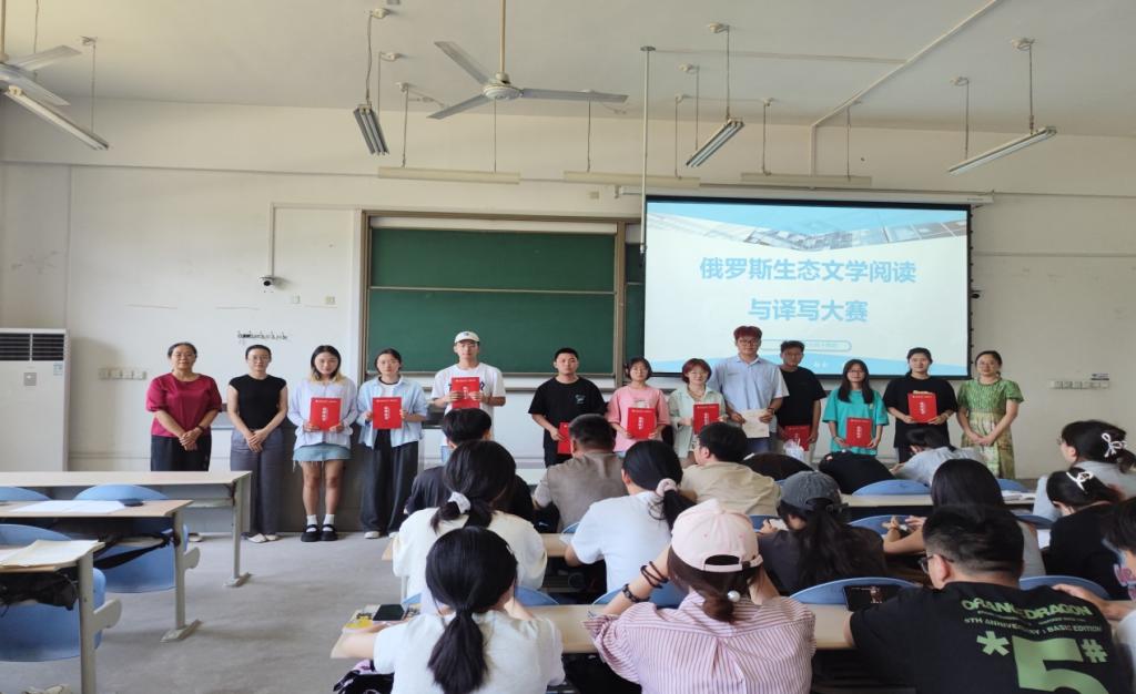 成功举办“俄罗斯生态文学与译写大赛”颁奖仪式。此次大赛旨在借助文学教育提升学生对俄罗斯生态文学的兴趣,增强其生态意识和环保责任感;培养学生的翻译能力和文学创作能力;通过研读名家经典之作,加深对俄罗斯文化的认识与了解,以促进中俄文化交流。参赛者主要是俄语专业学生,他们通过阅读原文小说和基于阅读的创意性写作展示自己的丰富想象力、出色的语言表达能力,以及对生态关系的深刻理解。