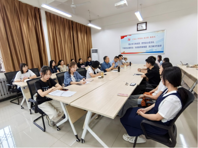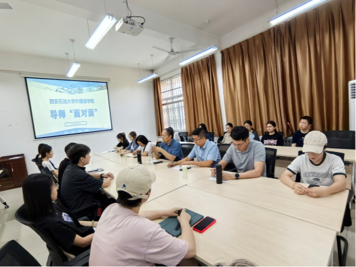 于9月11日下午在鄠邑校区崇文楼314室召开翻译硕士研究生导师“面对面”交流活动。本次活动邀请我院硕士研究生导师袁森教授、秦艳霞副教授、邓林副教授、王文峰副教授、2023级和2024级MTI优秀研究生代表参加,2021级本科英语专业及翻译专业5个班班委及部分考研学生参加了本次交流活动。活动由辅导员李青芬老师主持。