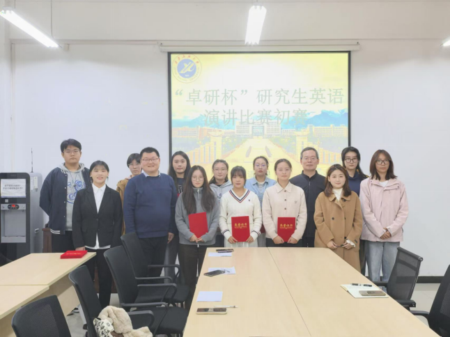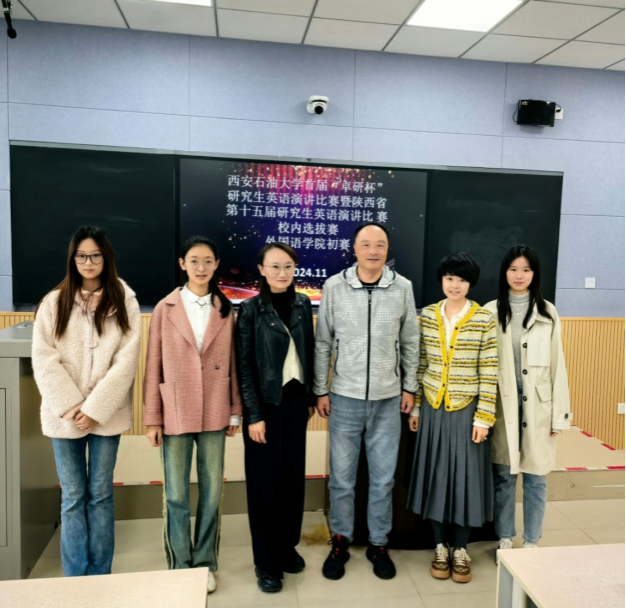在鄠邑校区A205举行首届“卓研杯”研究生英语演讲比赛暨陕西省第十五届研究生英语演讲比赛院级初赛,学院党委书记张建高、党委副书记邱岭、英语系主任钟泽波、教师苗旸和大学英语一部教师张帆担任评委,我院24级、23级研究生参加了本次院级初赛。