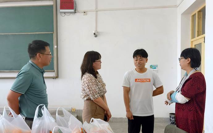 随后,学院领导还看望慰问了河南周口籍留校学生霍月朋,询问了家中受灾情况,在得知霍月朋家中庄稼全部被淹,今年收成无望后,学院领导叮嘱随行辅导员,按照学校政策向该生申请临时困难补助。霍月朋同学对学院领导、老师的关心表示感谢。