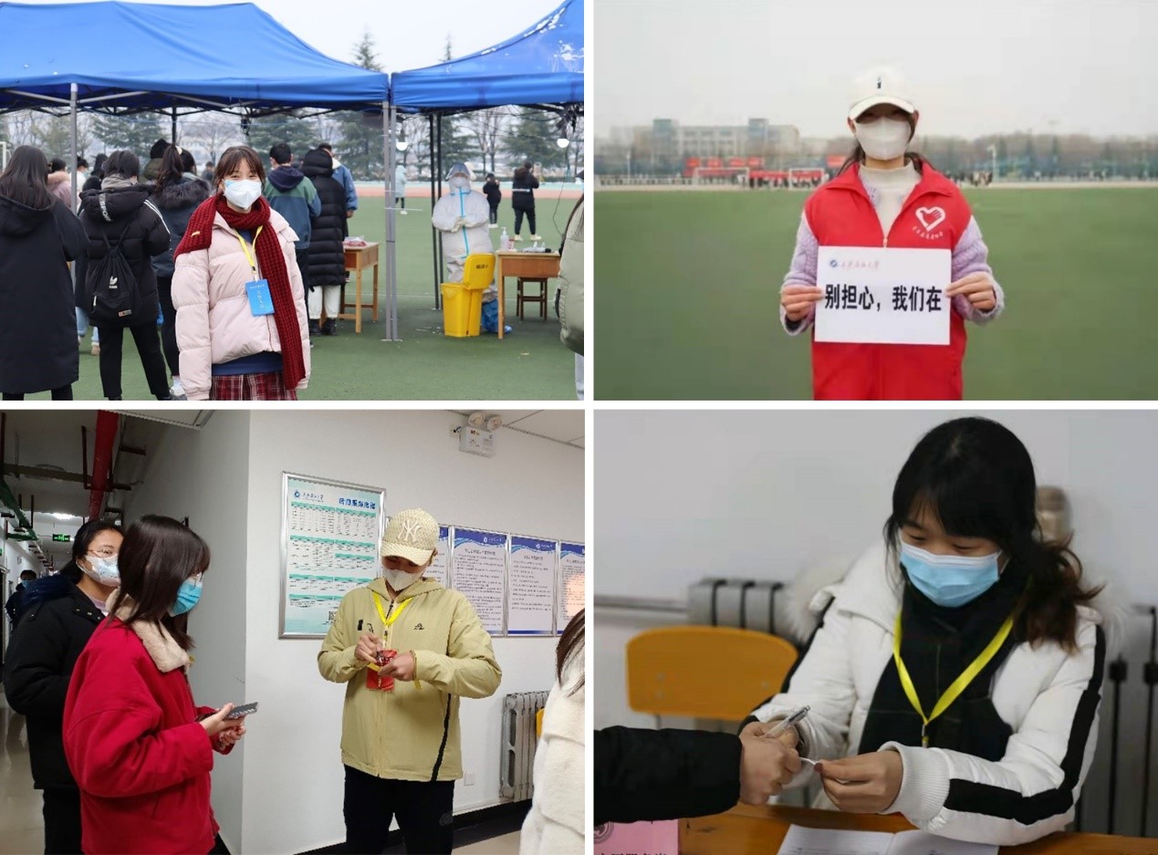 学院成立志愿服务先锋岗,号召学生积极参与疫情防控工作,累计有100余名青年学子主动请战,冲锋在前,到抗击疫情第一线,投入到防疫宣传、核酸检测、秩序维护、值勤值守等工作中,不论清晨还是黑夜,无惧寒冷和疲劳,以实际行动践行着青年使命,用真诚奉献诠释着责任与担当,他们身体力行地诠释着伟大抗疫精神和志愿服务精神。