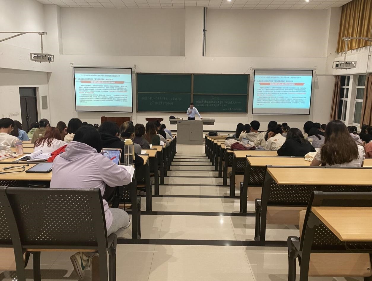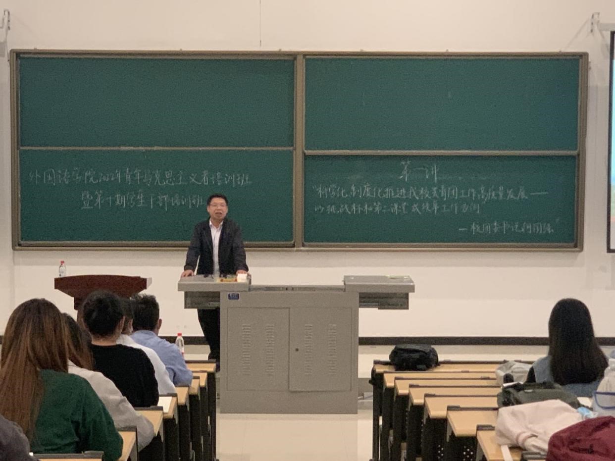 在石工地科楼115举办2022年青年马克思主义者培训班暨第十期学生干部培训班。邀请学校团委书记何国强担任主讲老师,学院党委副书记王业青做了开班仪式动员,活动由学院辅导员陈浩主持。