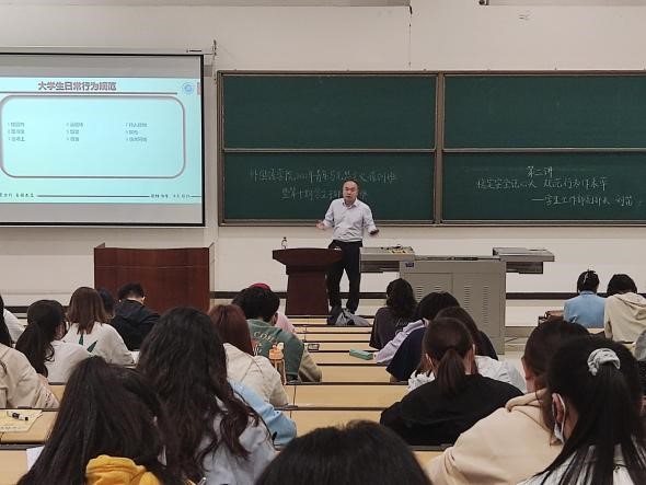 刘部长从高等院校、立德树人、大学生日常行为规范等多个维度阐明学校行为规范教育的必要性和重要性,采用由点到面、由浅到深的方式互动式地进行讲解,通过梳理学校管理过程中出现的学生不文明行为和稳定安全案例,要求学生干部们严于律己、以身作则,注重一点一滴、注意一言一行,不断完善自我,以实际行动辐射带动周边同学,形成良性互动,持续深入推进大学生行为规范教育,有效促进学生发展,维护学校文明和谐的良好风貌。