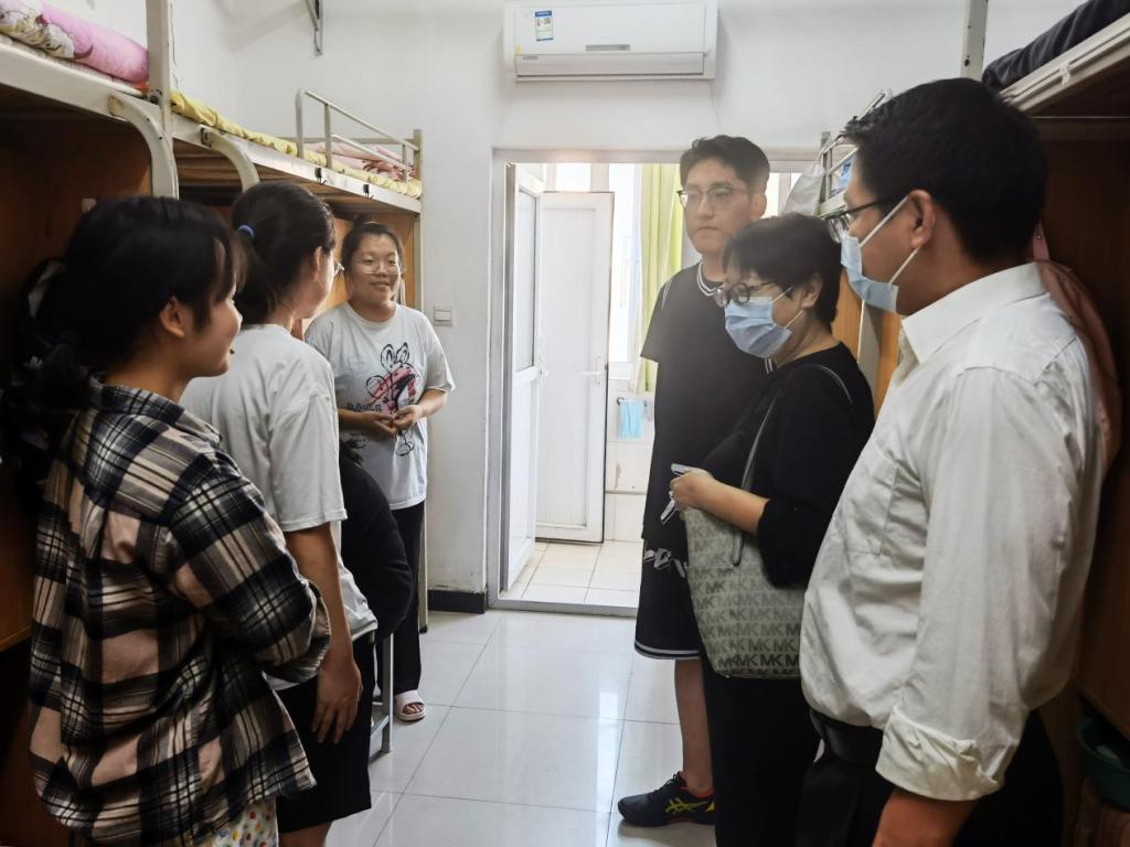 9月29日,学院院长于艳英、党委副书记王业青、学工办主任周宇通过走访宿舍,深入了解学生的学习、思想、安全等方面情况,并查看他们的线上学习情况。于艳英院长、王业青副书记叮嘱大家充分利用假期时间规划好学业,如需外出严格履行请假手续,校外期间做好个人防护和各项安全措施。