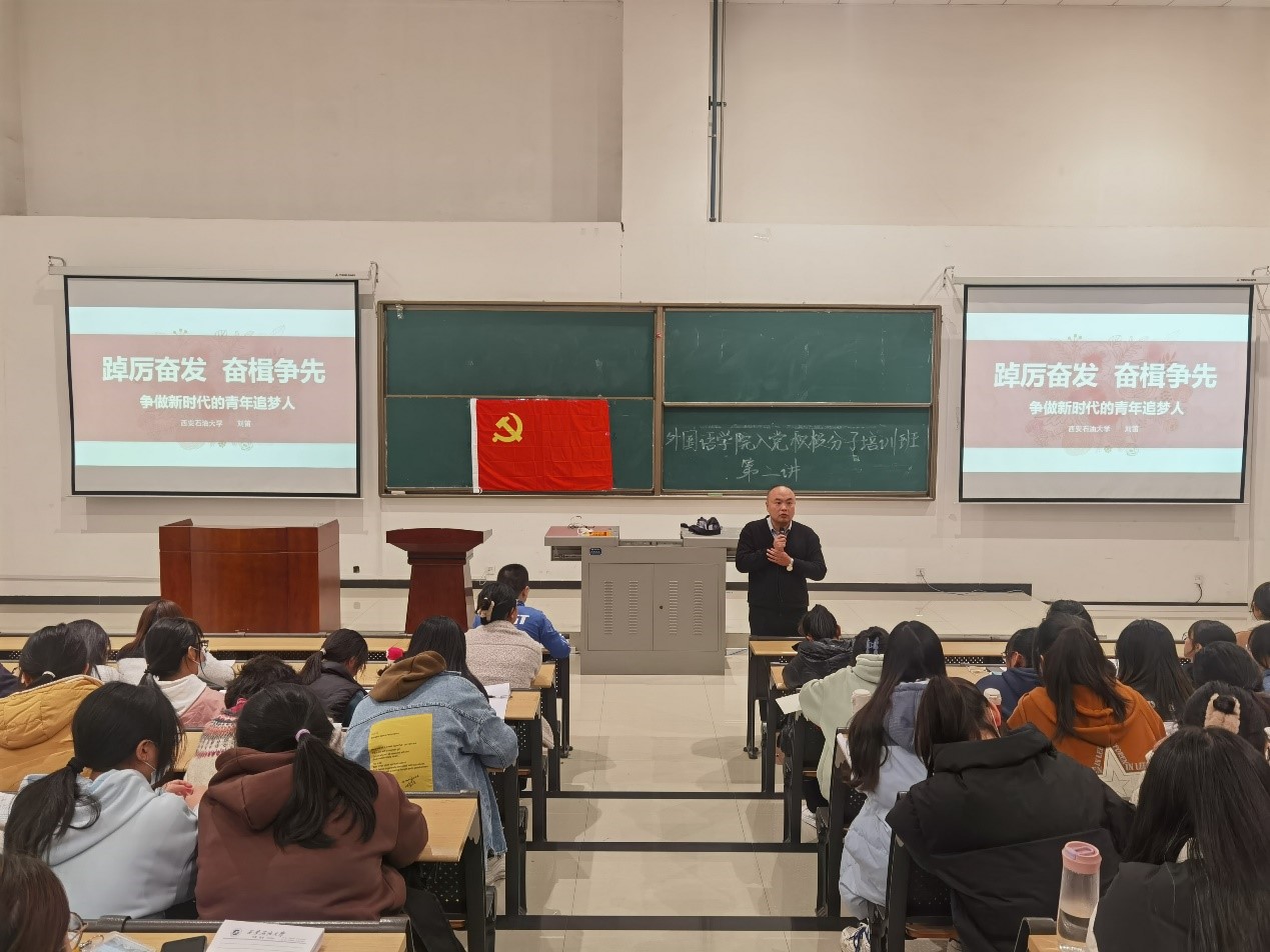第十一期入党积极分子培训班第二讲在开物楼115教室顺利举行。邀请学生工作处副处长刘笛老师担任主讲,2022年全体入党积极分子参加。