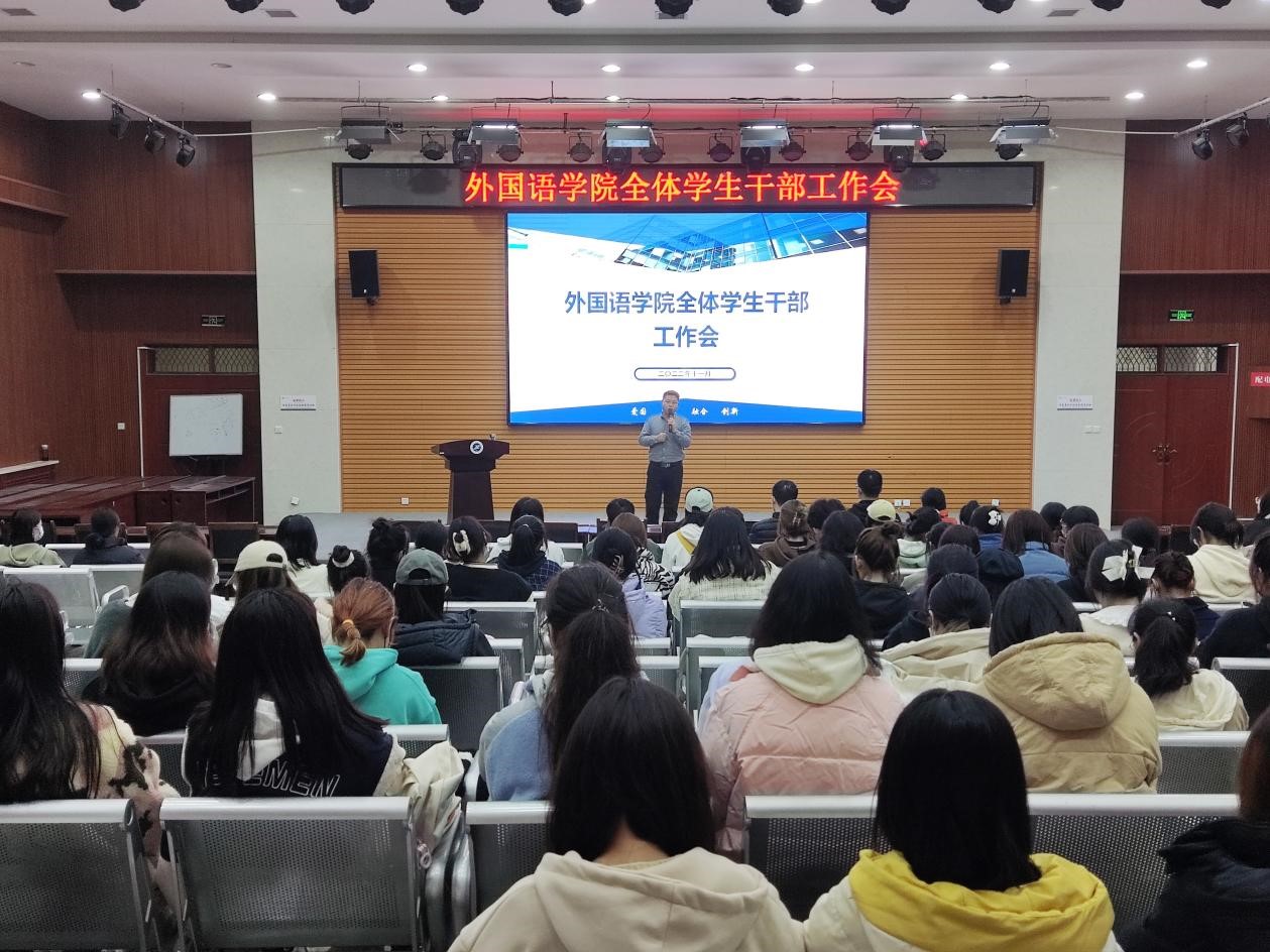 在崇文楼118多功能厅召开学院学生干部工作会,学院党委副书记王业青,全体辅导员,本科生班委同学参加会议。