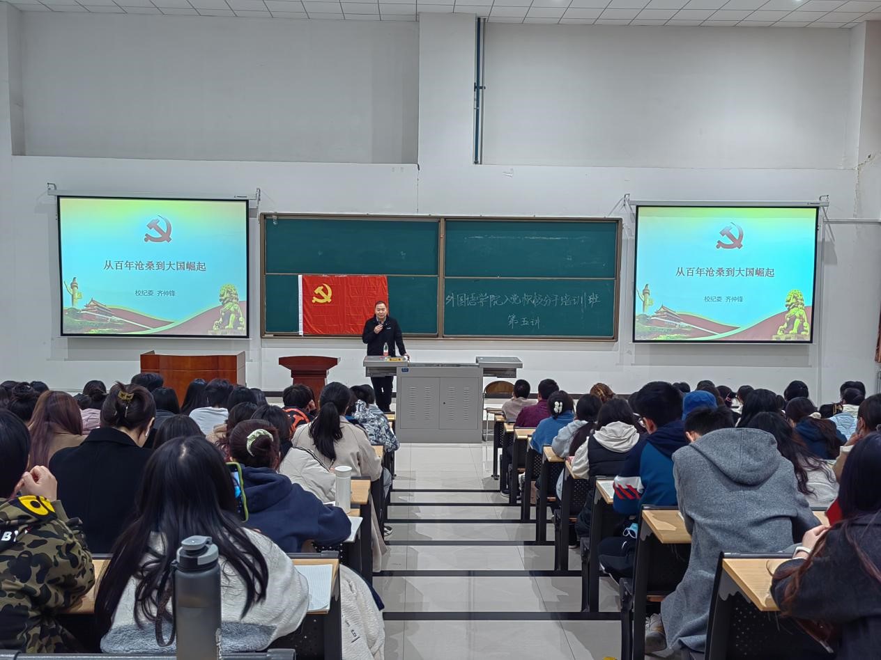 在鄠邑校区石工地科楼115教室举行第11期入党积极分子培训班第五次集中授课。邀请校纪委副书记齐仲锋担任主讲,学院党委副书记王业青主持。