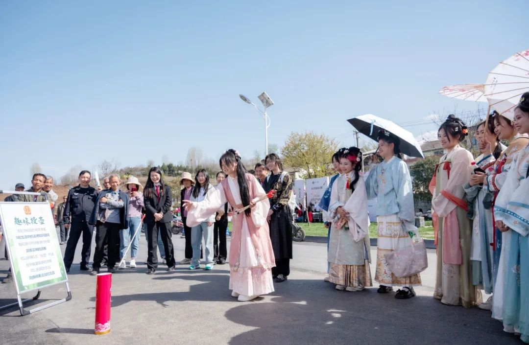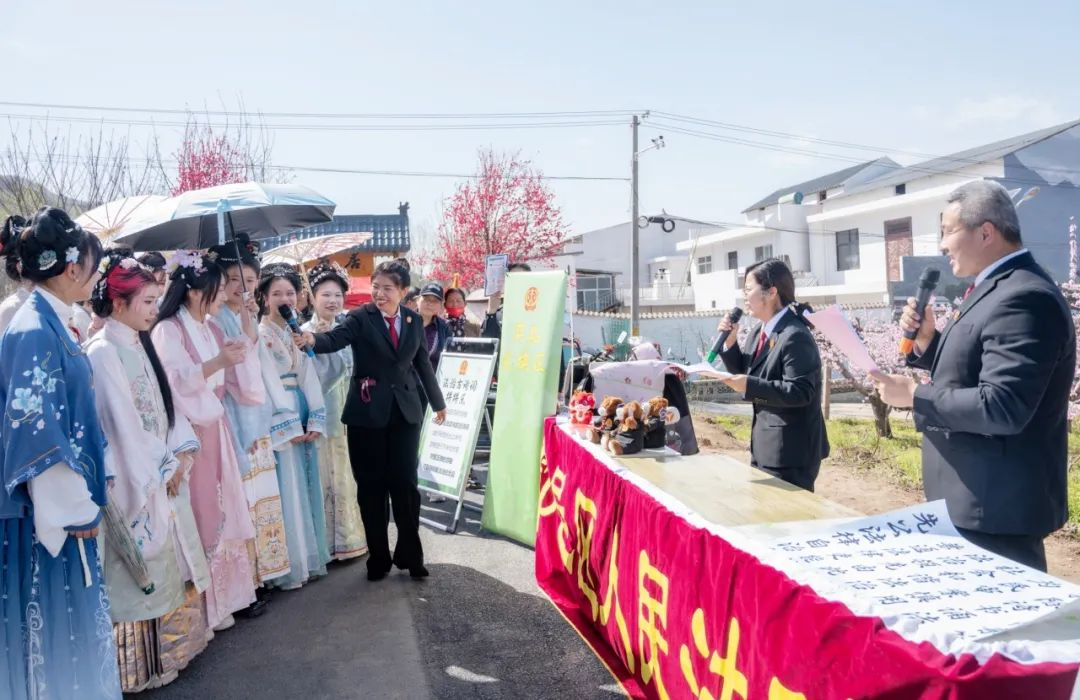国学社应邀赴鄠邑区蒋村街道柳泉口村参加由鄠邑区人民法院举办的2024年“法治桃花节”活动,国学社指导老师及10余名社团成员身着汉服参加活动。