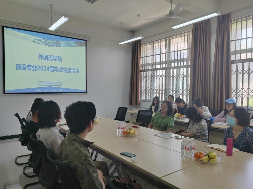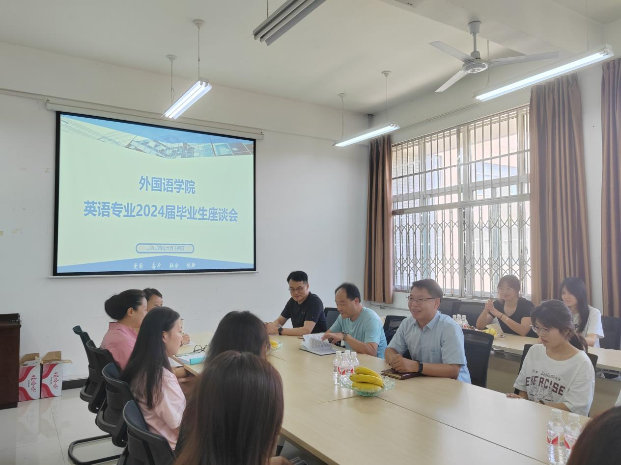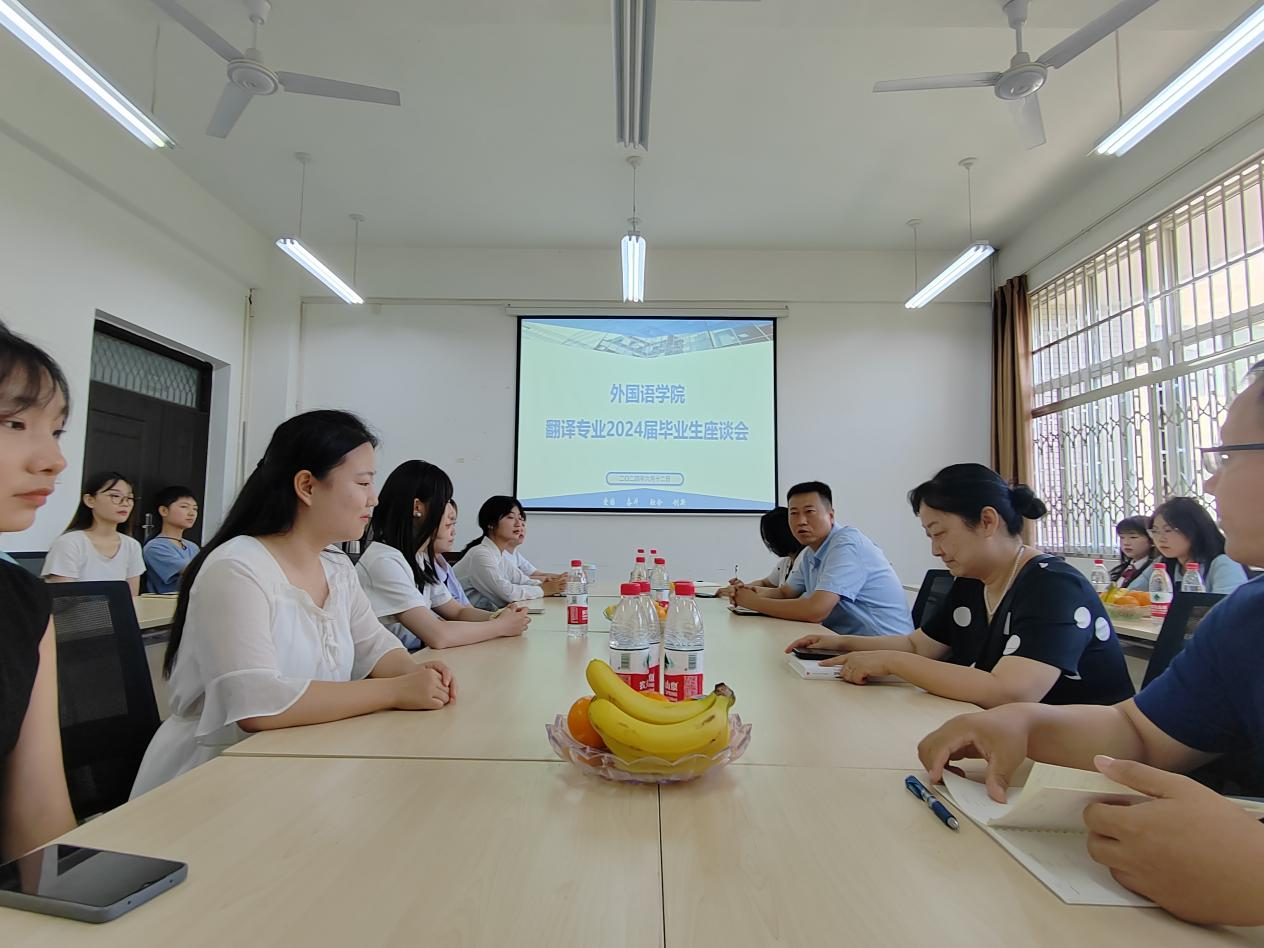 于6月12日-14日在崇文楼314分专业召开毕业生代表座谈会。学院党委副书记王业青,副院长陈武,英语系主任钟泽波,俄语系主任张艳,翻译系主任秦艳霞,各系部教师代表、毕业班辅导员及各专业毕业生代表参加座谈会。