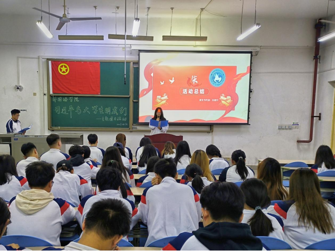 本次主题团日活动在庄严肃穆的气氛中拉开帷幕,主持人带领全体团员进行了以“习近平与大学生朋友们”为主题的理论学习,引导同学们进一步深化学习习近平总书记对青年的工作指导。通过学习习近平总书记对青年的殷殷寄语,培养同学们坚定理想信念,进而努力奋斗。全体参会学生共同观看学习视频《强国有我、青春有为》,理解青年力量在时代发展中所肩负的重任,勇挑时代大梁。