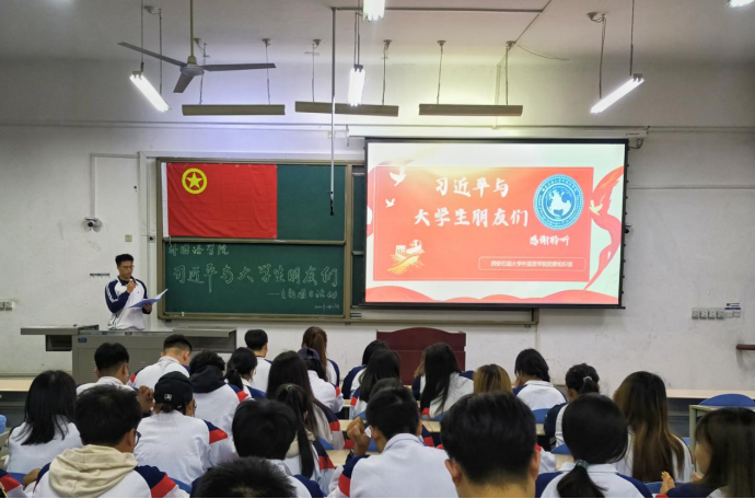 团委在鄠邑校区博思楼B102开展“习近平与大学生朋友们”为主题的主题团日活动,学院110余名团员青年代表参加活动。