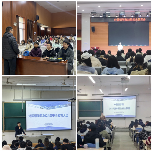 会上,各年级辅导员结合学校相关文件要求和近期全国相关高校发生的真实案例展开,从伤人案件、网络电信诈骗、校园骑行电动车、正确的恋爱观、秦岭登山、心理健康等各类公共安全事件警示以及校园安全隐患等方面进行了详细的讲解。各年级要求全体学生要牢牢树立“安全第一”的思想,不断提升自我保护意识和防范风险能力,做到“安全从我做起、从小事做起”;要主动加强学习,通过参加学校、学院组织的安全教育培训、安全主题班会、关注安全宣传教育等途径,了解并掌握防火、防盗、防诈骗、防溺水、心理健康等安全知识,形成全体师生“懂安全、守安全”的合力,共同守护校园安全稳定。