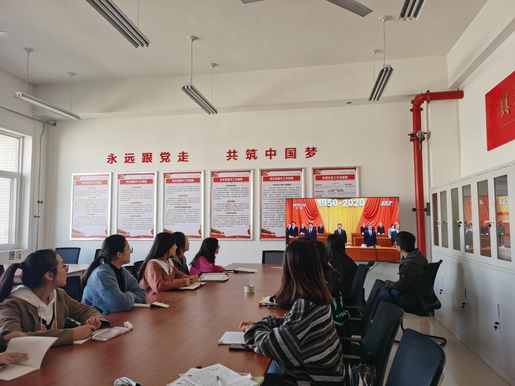 今天,我们正站在实现“两个一百年”奋斗目标的历史交汇点上,全面建成小康社会胜利在望,全面建设社会主义现代化国家前景光明。大家纷纷表示,将认真学习领会和贯彻落实习近平总书记重要讲话精神,铭记抗美援朝战争的艰辛历程和伟大胜利,在新时代新征程上披荆斩棘、奋勇前进,作为新时代的大学教师,更要立足本职岗位教书育人,落实好立德树人根本任务,为党育人、为国育才,不断提高人才培养质量,培养德智体美劳全面发展的社会主义建设者和接班人;作为新时代的大学生,更要勤奋学习,努力奋斗,只争朝夕、不负韶华,学到真本领、练就真本事,为实现中国特色社会主义伟大事业的中国梦奋斗终身。抗美援朝战争锻造形成的伟大抗美援朝精神,是弥足珍贵的精神财富,必将激励全院师生直面挑战,勇于创新,将这一伟大精神融入学院各项工作中,不断推动学院各项事业更好更快发展。(文:苗雨,陈浩,图:刘玺,陈浩)