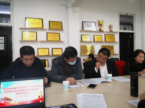 与会教师结合学院教学及教书育人工作实际对落实党的十九届六中全会精神进行了专题研讨。