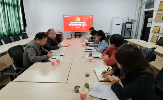 党委对党史学习教育专题民主生活会高度重视,准备充分、程序规范,聚焦突出问题,深刻剖析检查,认真开展批评,制定整改措施。他结合学院班子的对照检查和当前发展实际,提出五点要求和希望:一是强化理论联系实际,切实将理论学习的成果运用到学院学科专业发展和人才培养质量的提升中;二是强化意识形态工作,夯实外语课堂教学、教材审核选用和外教管理中的意识形态工作责任,加强课程思政建设,落实立德树人根本任务;三是强化师资队伍建设,优化教师职称、学缘和年龄结构;四是强化大学英语教学,提高课堂教学质量,提升四六级通过率和考研率;五是优化学科专业布局,以国家一流英语专业建设为契机,聚焦社会需求,凝练行业特色,积极提升俄语和翻译专业建设水平。他勉励学院领导班子注重总结办学经验,积极宣传提升品牌,在积极落实学校“十四五”发展规划目标中,实现学院高质量发展。