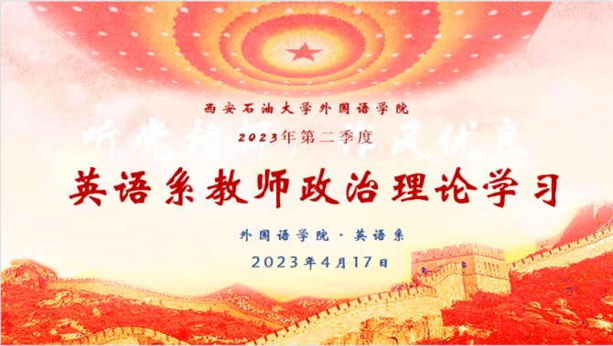 4月17日下午,英语系教工党支部在雁塔校区华油能源楼727会议室召开了政治理论学习专题研讨扩大会。英语系全体教师参加会议。会议由英语系教工党支部书记王文峰主持。