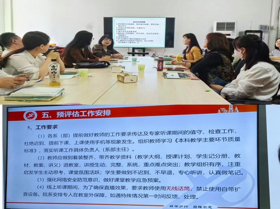 大学外语第一教学部雁塔校区华油能源楼727会议室召开了政治理论学习暨预评估教学工作会议及集体备课活动。会议由党支部书记付俊芳主持,大学外语第一教学部全体教师参加了会议。
