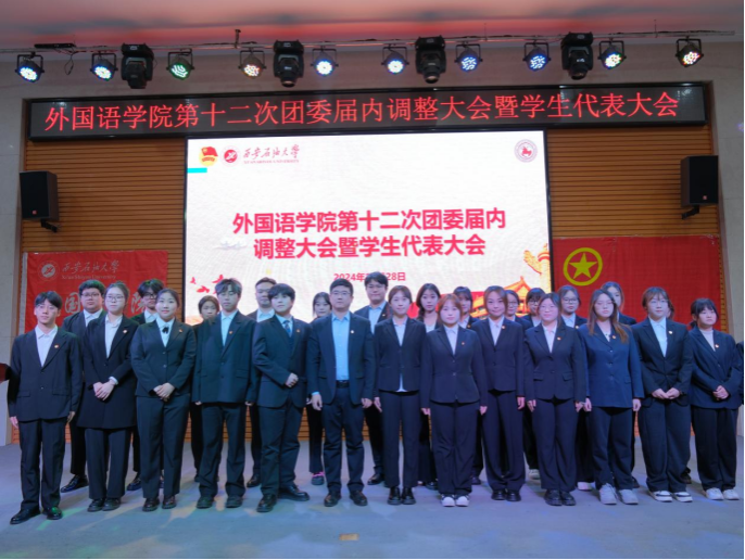 第十二次团委届内调整大会暨学生代表大会在鄠邑校区崇文楼118多功能厅召开。校团委副书记王军策,学院党委副书记邱岭,学院团委书记陈浩出席大会,校学生会和各兄弟院(系)学生会负责人,学院学生代表共计110余人参加。