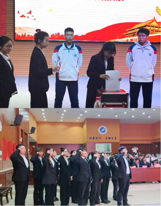 第十二次团委届内调整大会暨学生代表大会筹备工作报告》和第十一届学生委员会代表石晶晶作的《以恒心守初心,以实干践使命,建设跟党走,敢拼搏,强凝聚的学生会组织》的报告。大会选举产生了新一届学院团委委员和学生委员会委员,并进行宣誓。