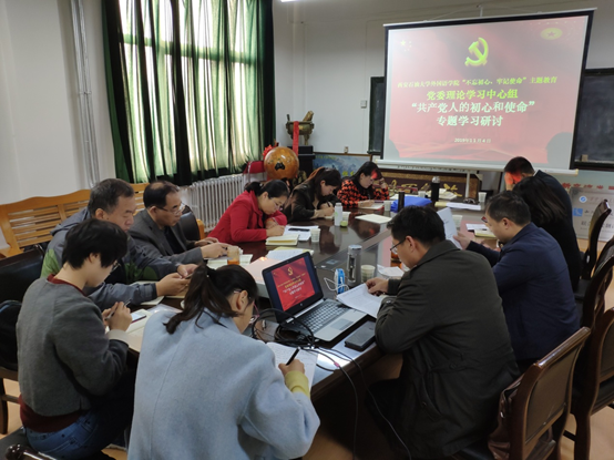 党委理论学习中心组在雁塔校区1号教学主楼701会议室召开“共产党人的初心和使命”专题学习研讨会暨“不忘初心、牢记使命”主题教育党员处级干部对照党章党规找差距专题会议。学院党政领导班子、理论中心组成员、教工党支部书记参加了会议,会议由学院党委书记蔡强主持。