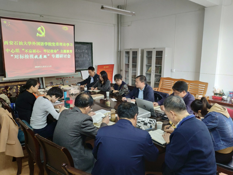 接下来,大家围绕“对标检视找差距”这一专题,以本职工作、个人岗位为突破口和切入点,按照学校党委“不忘初心、牢记使命”主题教育安排部署,结合高校教师党员身份,对照党章党规、对照“四有好老师”要求,从落实立德树人根本任务、外国语言文学一级学科硕士点申报、大学英语教学质量和专业人才培养质量提升、科研团队建设、制度建设、教学科研保障、学生管理、党支部建设、党员作用发挥、政治理论学习等多个方面认真查找问题、深刻剖析,对自身存在不足和学院工作亟需改进提升的方面进行了深刻剖析,同时明确了个人整改方向和措施,也对学院相关工作提出意见建议。会上大家热烈发言、积极交流研讨。