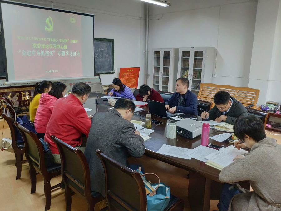 学习研讨会后,学院还召开了党委会,推进基层党支部“不忘初心、牢记使命”主题教育。他首先传达了学校党委主题教育推进会议精神,还从规范支部工作手册、严格主题教育学习教育内容、抓好主题教育专题学习研讨安排、11月份党支部专题组织生活会准备、党支部书记讲党课、集中组织教师党员参观学习西迁博物馆参观学习开展主题党日活动等对学院党支部工作做了具体部署要求。会上,还专题研讨了学院意识形态和学生安全稳定工作。