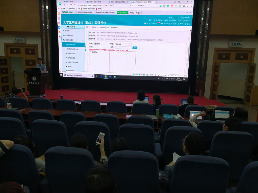 5月29日下午,我院在西阶学术报告厅举办大学生本科毕业设计(论文)管理系统专题培训。我院全体毕业论文指导老师、副高及以上人员、博士、在读博士、各中心及系部负责人参加了培训。