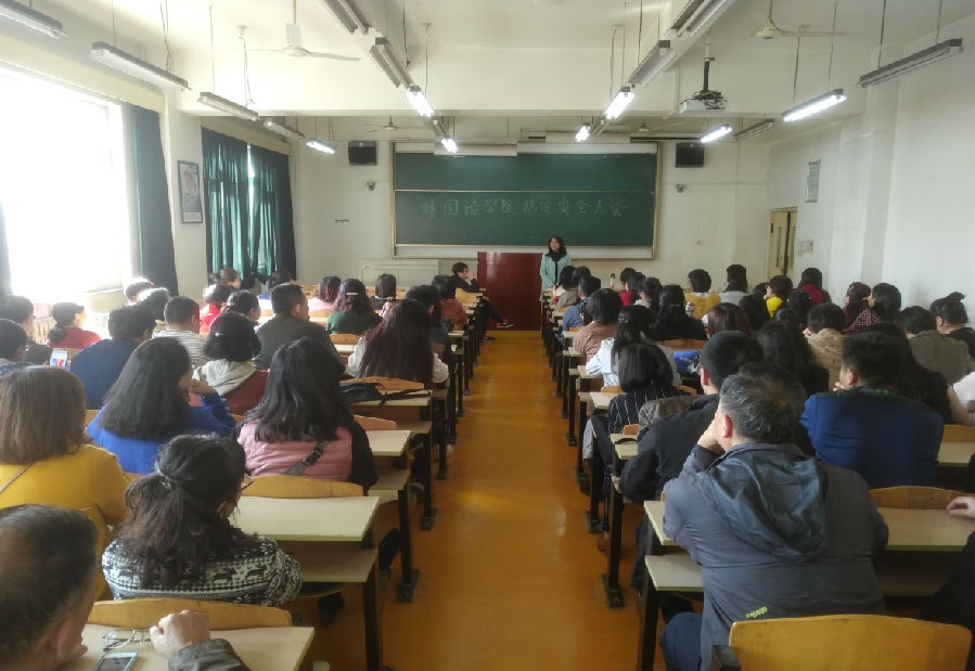 党委在雁塔校区二号教学楼1211#召开全院教师大会。院党委书记廖敏带领全体教师一起认真学习了《中华人民共和国反恐怖主义法》。