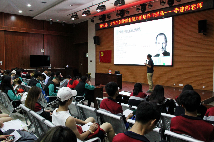 校团委李建伟老师,主讲内容为大学生创新创业能力的培养与提高。