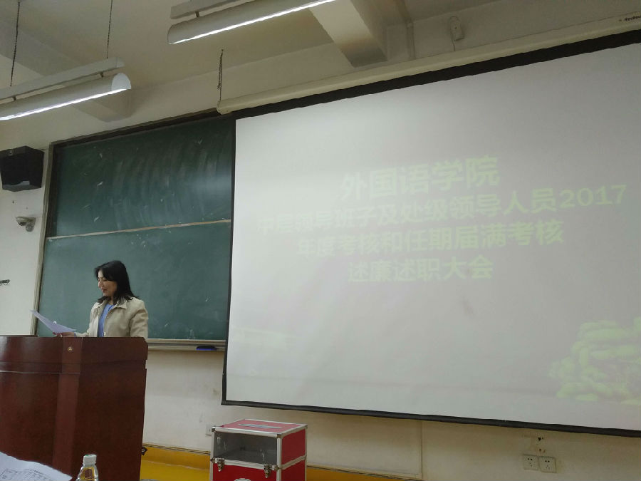 大会分为两个环节,一是中层领导班子和处级领导人员进行大会述职述廉,二是进行民主测评。在大会述职述廉环节,首先由于艳英院长代表学院领导班子进行述职述廉及个人述职述廉,之后其他处级领导人员依次进行了述职述廉。述职述廉结束后随即展开民主测评工作,由全院教职工对本单位中层领导班子和处、科级领导人员进行民主测评。