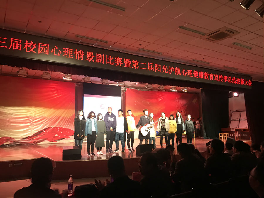 同学组成的心理情景剧剧组,以自己精湛细腻、出神入化的表演,在11各参赛队中勇拔头筹,摘取了大赛唯一的一等奖。指导教师、2016级辅导员李洋甜老师也同时获得优秀指导教师两项大奖。