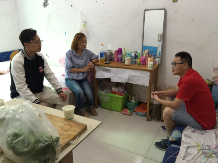 蒋老师与两位同学的家人进行了沟通和交流,向家长汇报了学生的在校表现,了解了两位同学的家庭情况,分发和宣传了建档立卡学生的国家政策,并代表学院为每位同学带去200元的慰问金。