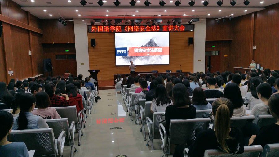 党委书记廖敏、校信息中心苗成老师、西安山石网科公司王勇经理以及我院14、15及16级全体同学参加了宣讲大会。