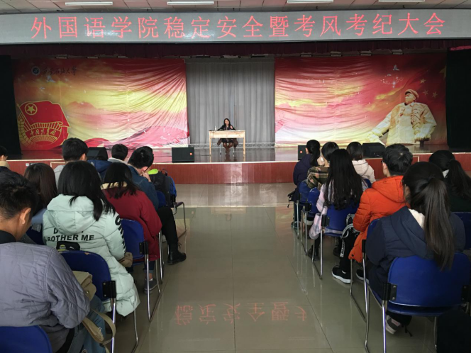 在腾辉活动中心召开全院本科生稳定安全暨考风考级大会。