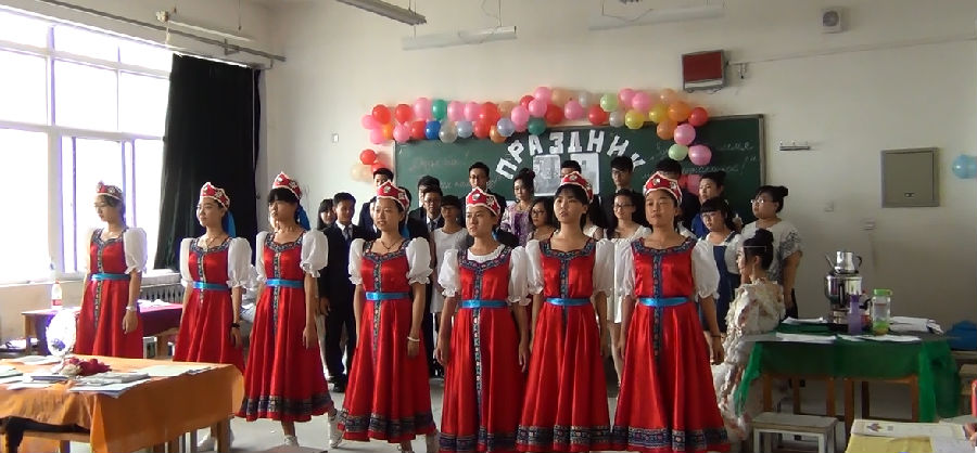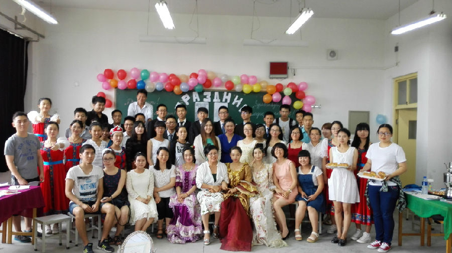 2015年6月10日下午14:30,由我院组织的俄语节(Празник русского языка)庆祝活动在A533教室举行。参加活动的人员有俄语系贾永宁老师,李娜老师,外教丽达,2013级、2014级俄语系大部分学生,2012级部分学生,和俄罗斯布里亚特留学生等等。