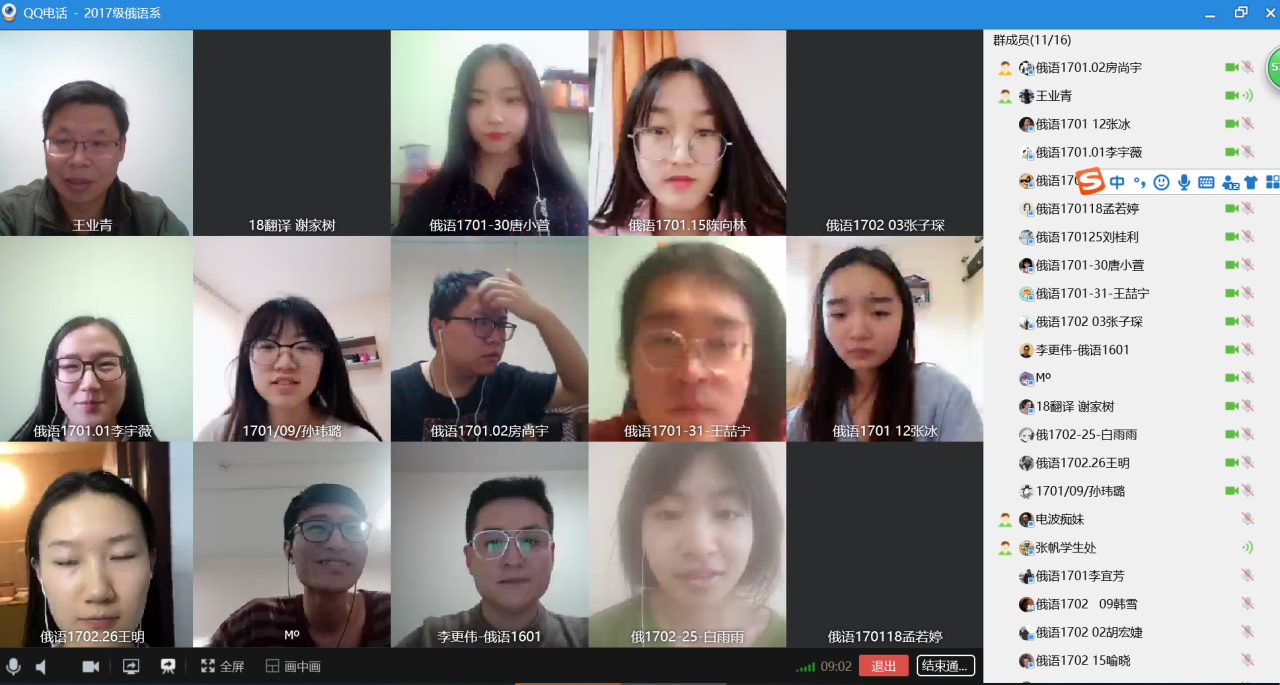 海外交流学生网络视频会议,党委书记蔡强、院长于艳英、副院长陈武、俄语系主任李娜、副主任李更伟、学生管理办公室主任、2017级辅导员张帆以及2017俄语专业在俄罗斯学习的学生和2017、2018级在韩国学习学生参加会议。会议由学院党委副书记王业青主持。来自俄罗斯莫斯科、喀山、新西伯利亚、布里亚特和韩国光州等不同地区的同学们分别介绍了目前所在地的防疫举措,自身的学习和防控疫情物资准备情况以及面临的困难与挑战。参会领导和老师向同学们传到了学校关于海外学习学生问候和疫情防控要求,表达了全院师生对同学们的牵挂,提醒他们要乐观面对疫情,认真做好自身防护,加强互帮互助,实时保持沟通和联系,合理调节好国外的学习任务,展现西石大学子的精神风貌。