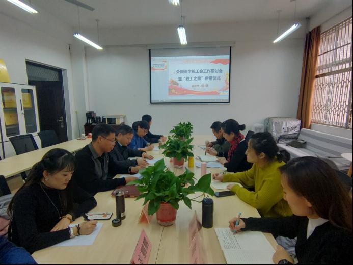 在鄠邑校区院系楼314召开工会工作研讨会暨“教工之家”启用仪式。邀请校工会副主席朱玮到会指导,学院党委书记蔡强、院长于艳英、学院党委副书记、工会主席王业青、副院长陈武以及学院工会委员参加。活动由党委书记蔡强主持。