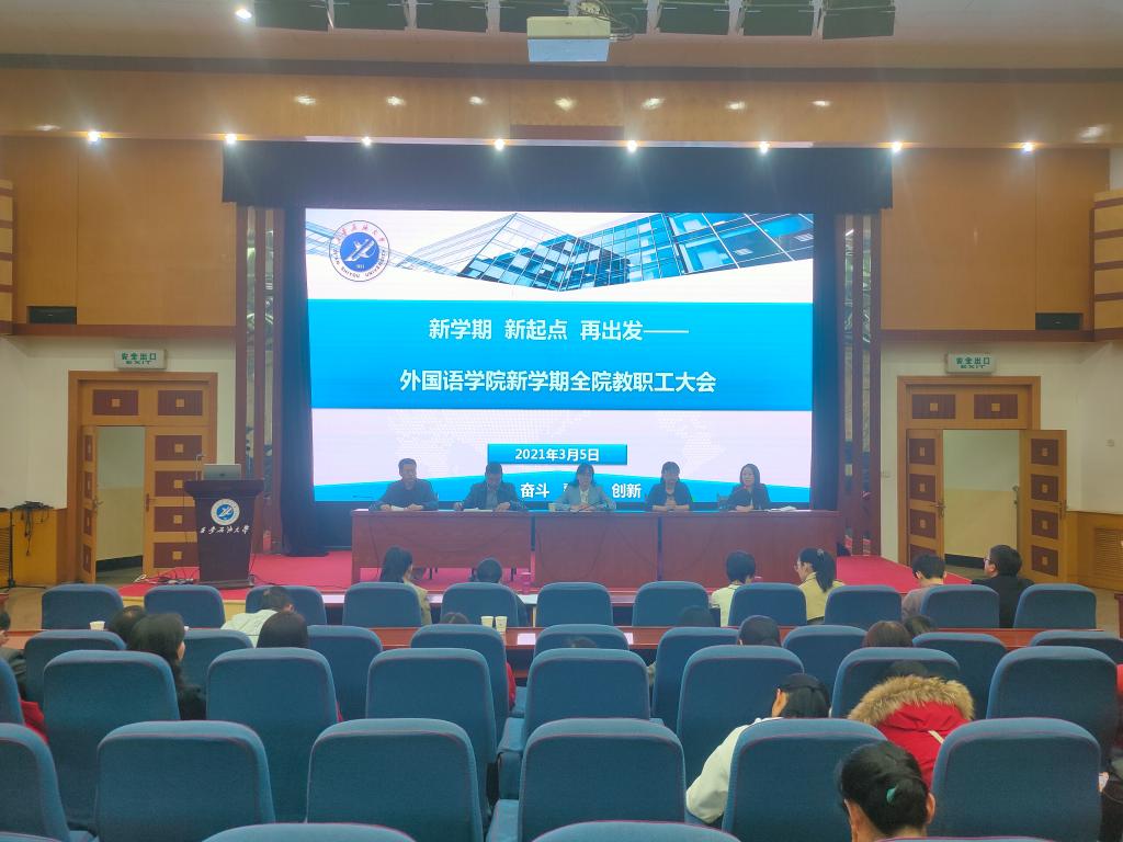 在雁塔校区会议中心学术报告厅召开“新学期、新起点、再出发”全院教职工大会。会议由学院党委副书记、工会主席王业青主持。