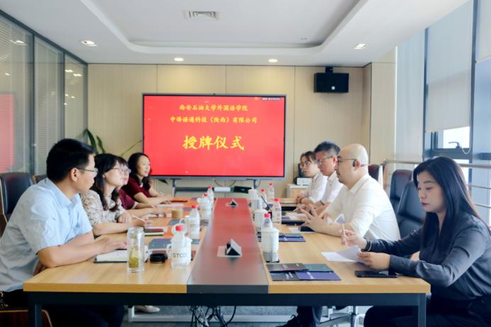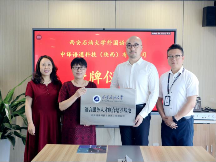 党委书记田虹霞、院长于艳英、党委副书记王业青、副院长刘辉一行人走访我院翻译硕士人才联合培养基地中译语通科技(陕西)有限公司,并进行了“语言服务人才联合培养基地”和“大学生就业见习基地”的揭牌仪式。