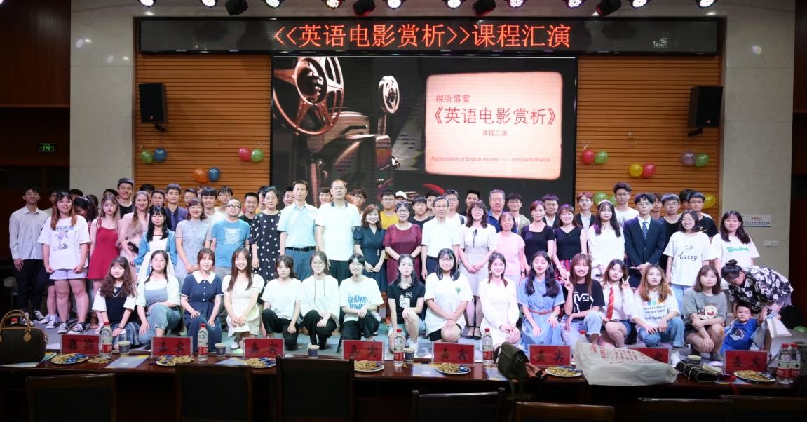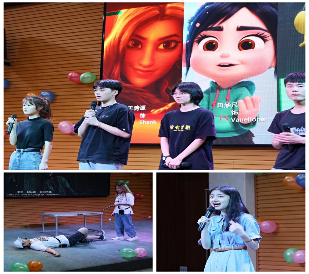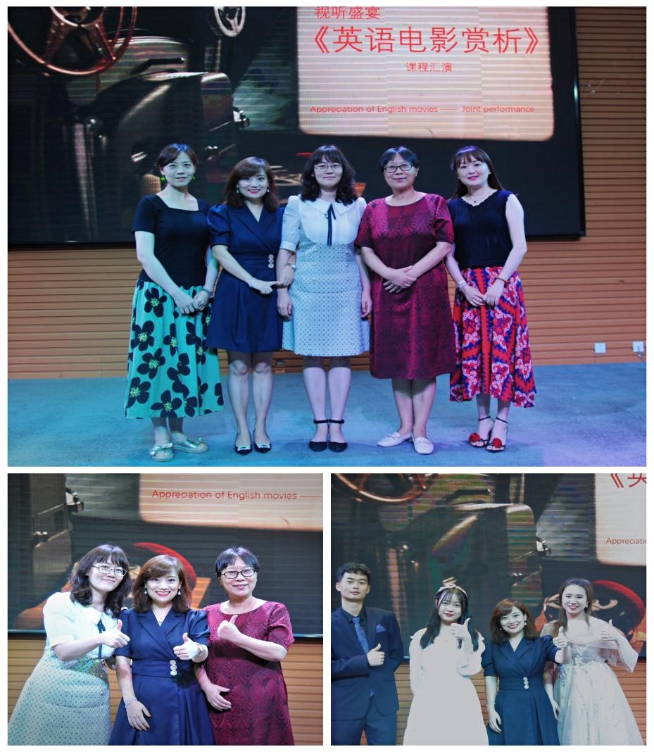 本学期大学英语教学改革分方向《英语电影赏析》的课程情况;紧接着由三名同学进行课程汇报,进行学习成果分享。接下来是汇演的第二部分,节目异彩纷呈,包括英语话剧、经典英语电影配音、歌曲演唱、英文诗歌朗诵及英语舞台剧等,汇演现场高潮不断迭起,整个会场掌声不断。