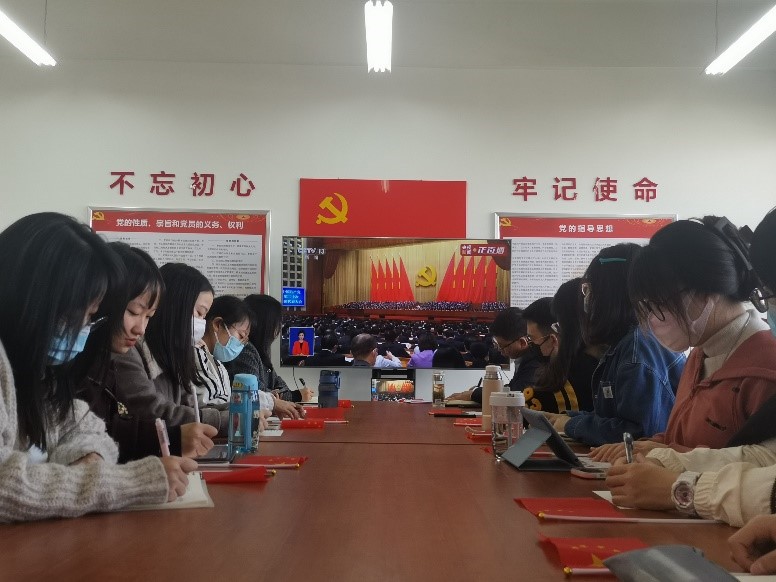 俄语系学生党支部全体党员通过网络直播在鄠邑校区崇文楼430共同观看了习近平总书记在中国共产党第二十次全国代表大会上的报告,并结合自身学习生活、热议报告精神,交流思想感悟。