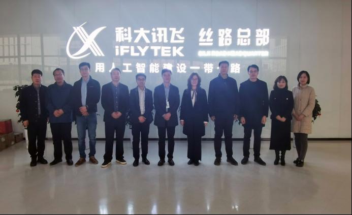 党委书记田虹霞、副院长陈武一行7人前往科大讯飞丝路总部走访调研。科大讯飞高教校企合作总监曹远攀、高教业务线区域总监陈磊、陕西大区人力资源总监陈小芸、AI资源部区域数据资源中心西安基地负责人韩冬、2013级校友耿豪参加交流座谈。